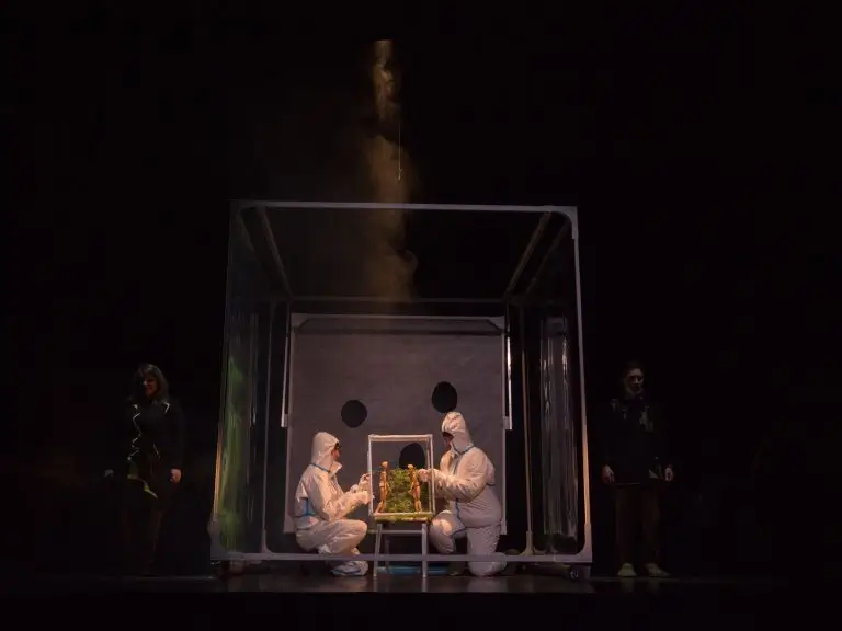 Весілля, похорон і оргія — три крайні точки однієї лінії, де життя, смерть і спрага близькості стоять зовсім поруч. Театр бере ці ритуали й повертає нам, як дзеркало: у ляльках, у тінях, у сміхові, що вивільняє. Ми дивимося — і впізнаємо себе з учорашнього дня: в темній кухні під час блекауту, у підвалі з термокружкою, на балконі, де хтось сушить прапор і перевіряє павербанк.