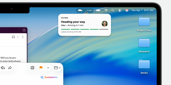 Зв'язок між пристроями став ще зручнішим. На Mac з'явилося додаток «Телефон», а Live Activities з iPhone тепер можна бачити прямо в системі, щоб швидше стежити за важливими подіями і відразу відкривати деталі.