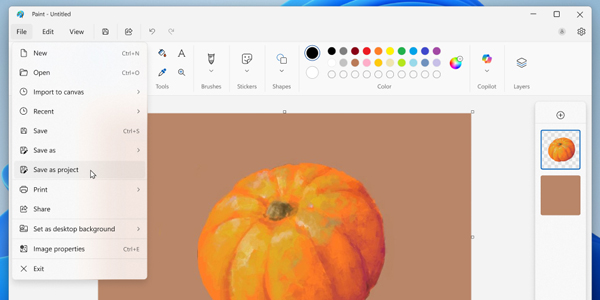 В Paint додадуть підтримку проектних файлів у форматі .paint, де будуть зберігатися всі шари. Це дозволить закрити проект, а потім повернутися до нього пізніше і продовжити роботу з того самого місця.