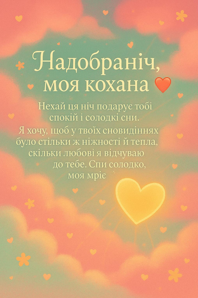 Дуже красиві оригінальні душевні Листівки Побажання на добраніч для коханої — ніжні слова перед сном