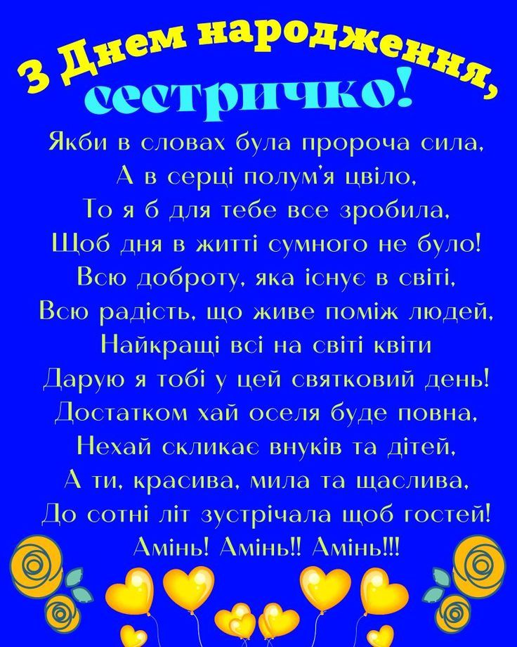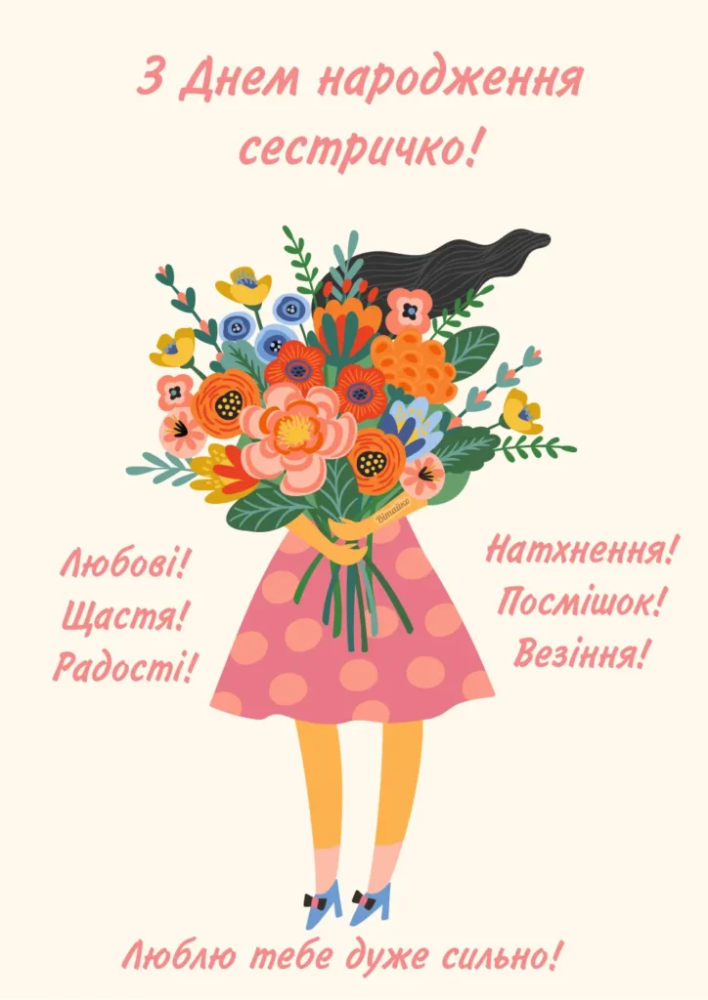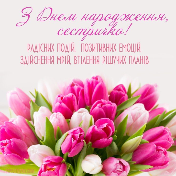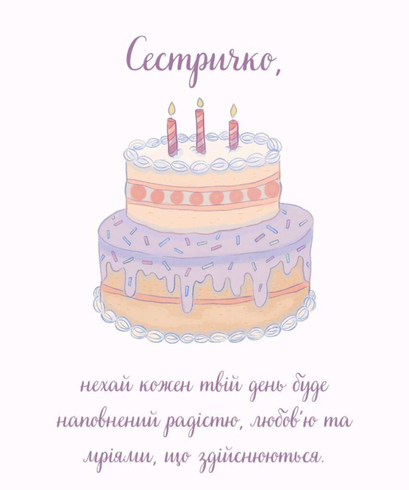Листівки Привітання з днем народження сестри (100)Всього: 100 шт