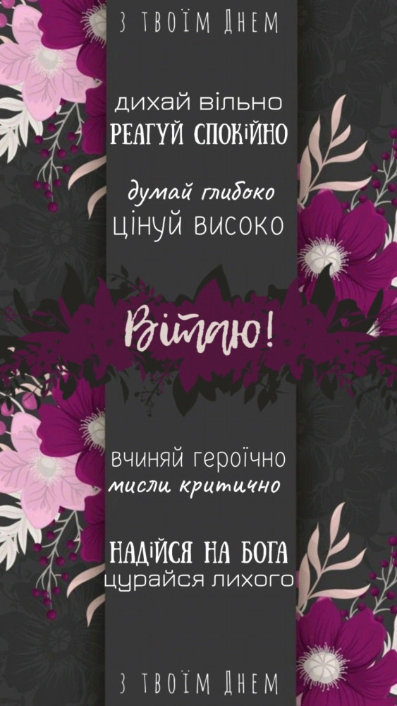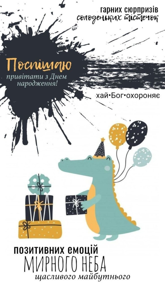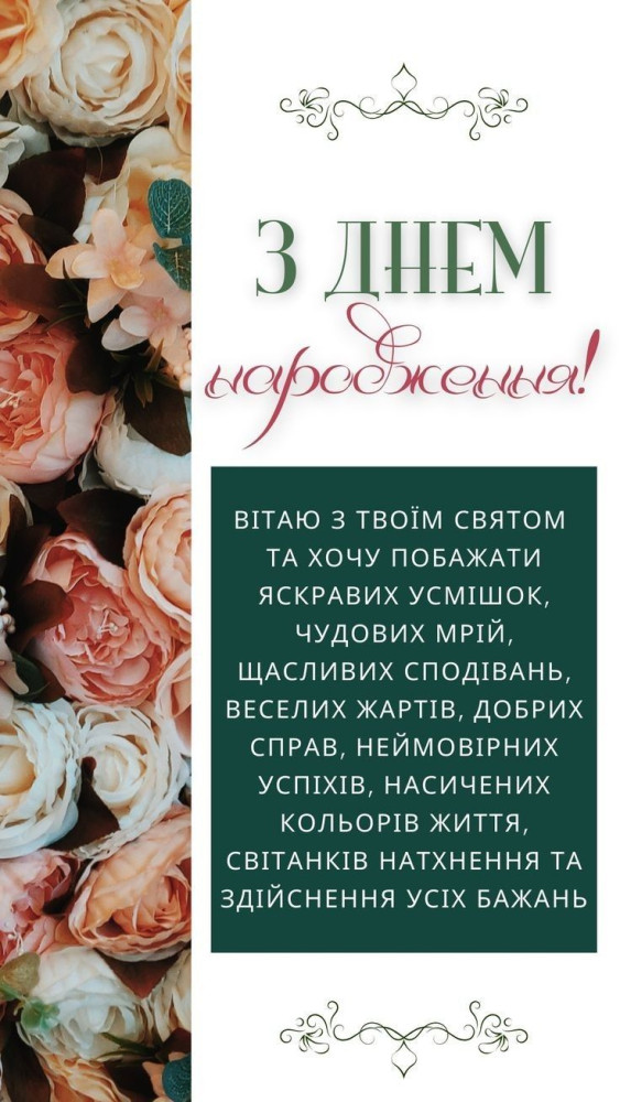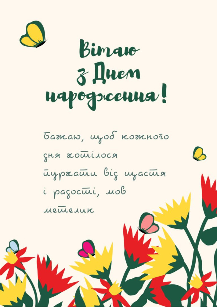 "Вітаю з днем народження! Нехай у житті буде багато яскравих моментів, а кожен новий день приносить тільки позитивні емоції та усміхнених людей поряд!"