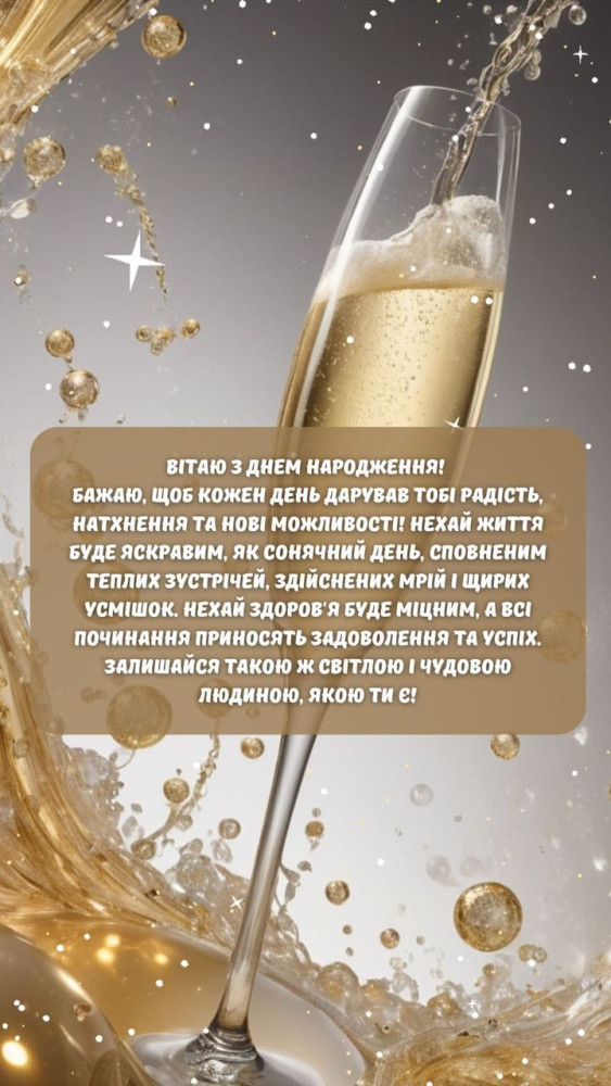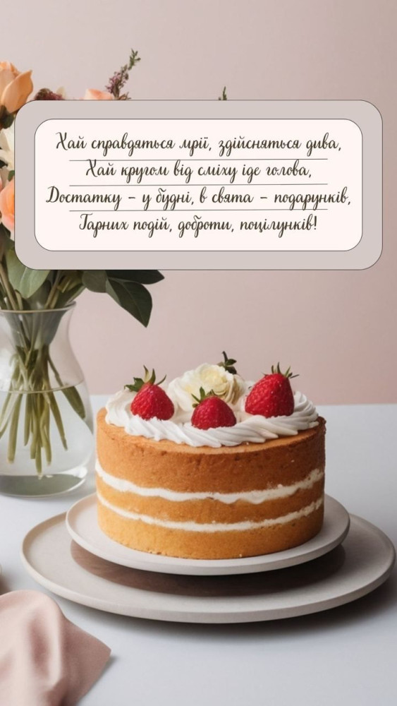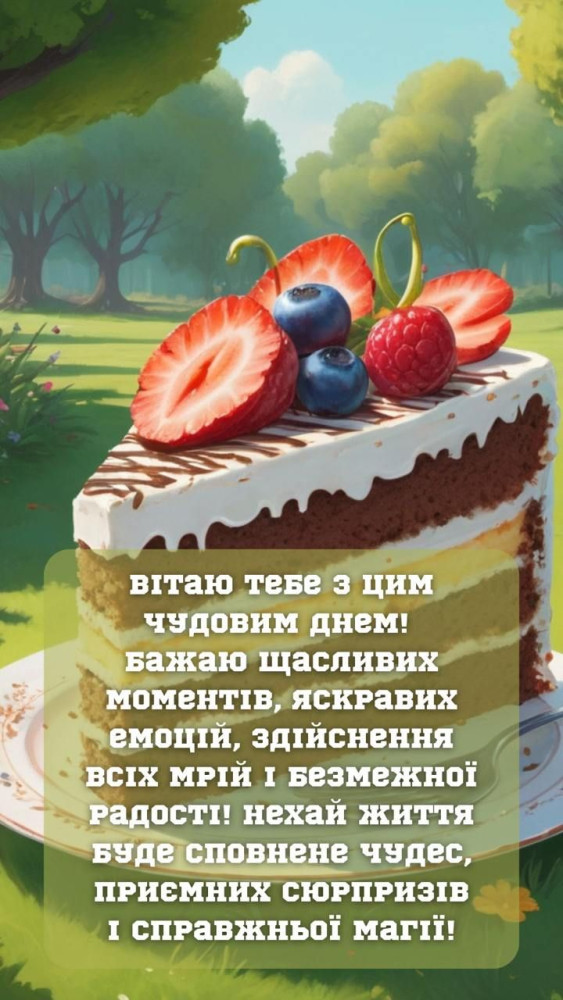 "З днем народження! Бажаю, щоб твоє життя було схоже на казку — повнечарівництва, пригод та незабутніх моментів. Нехай збудуться всі мрії!"