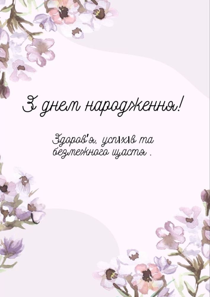 "З днем народження! Цього особливого дня хочу побажати тобі любові, дружби та тепла. Нехай поряд завжди будуть люди, які підтримують та надихають!"