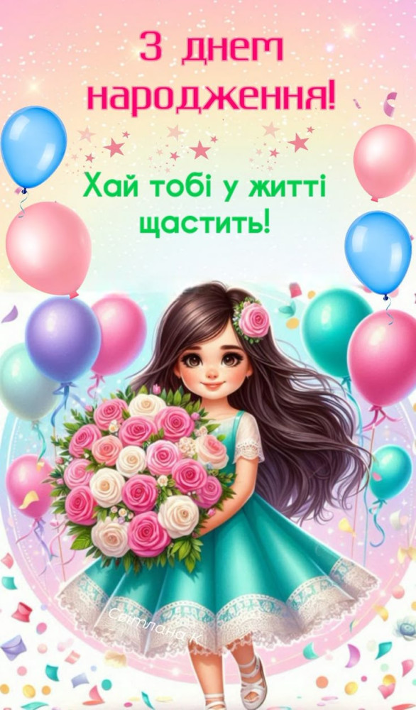 Листівки Вітання з днем народження дівчинки (100)Всього: 100 шт