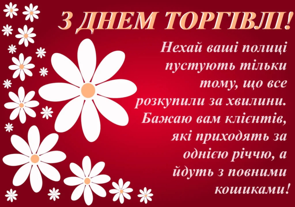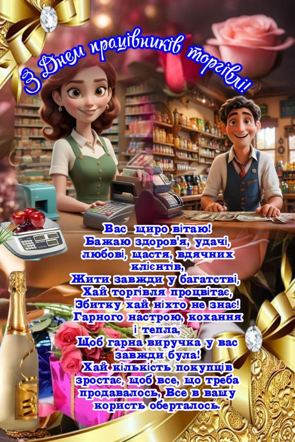 День працівника торгівлі в Україні — важливе професійне свято, яке об’єднує тисячі фахівців по всій країні. Від роздрібної мережі до складського центру, від логіста до продавця — кожен із них робить наше щоденне життя комфортнішим. Привітайте своїх колег, рідних або друзів, які пов’язані з торгівлею, і подаруйте їм трохи уваги в їхній професійний день!