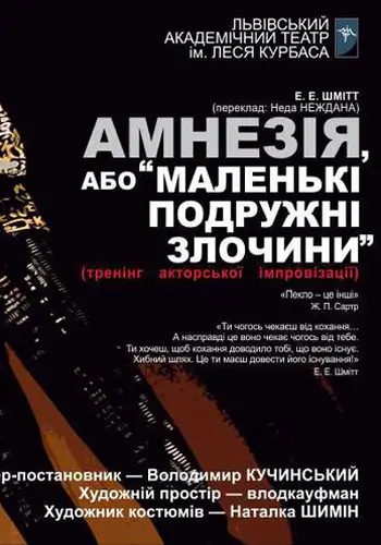 спектакль Амнезия, или Маленькие супружеские преступления Львов 2025-12-14 18:00 Львовский академический театр им. Леся Курбаса