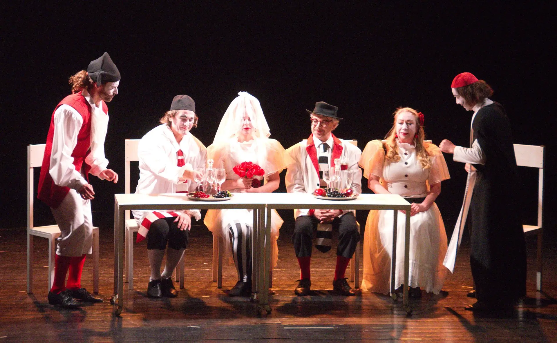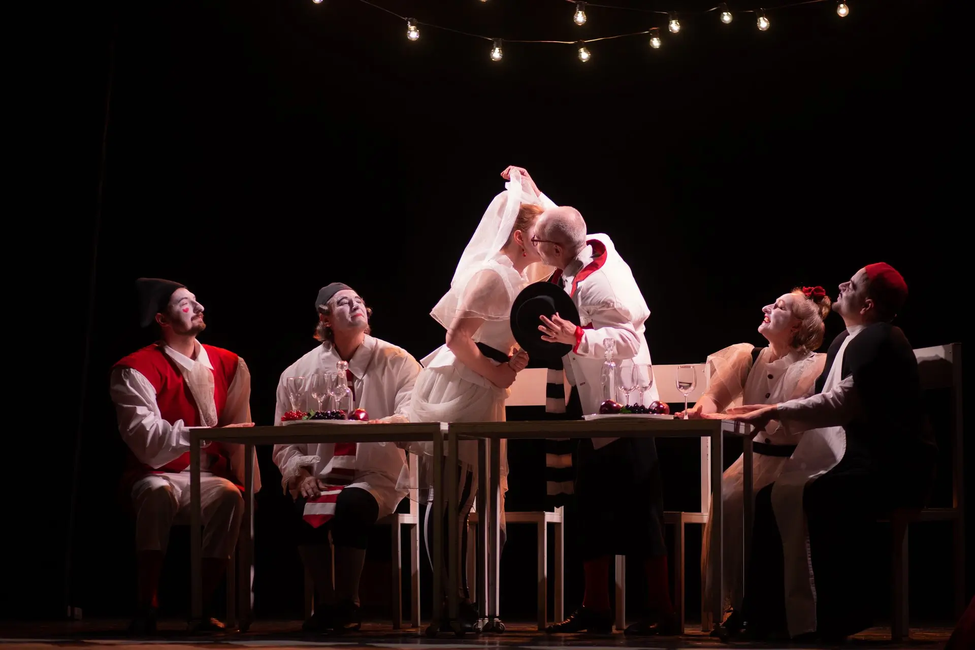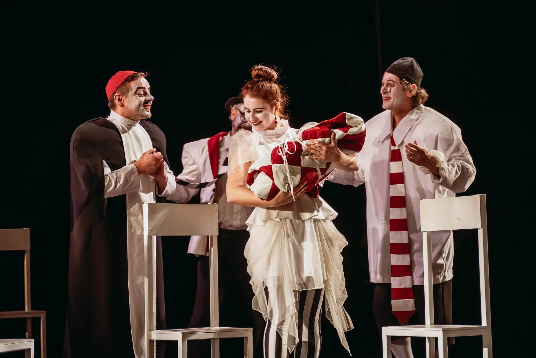 Выступление с итальянским шармом в духе комедии дель арте: быстрые перепалки, игра масок, импровизации и зажигательный темперамент, от которого сцена дышит, словно площадь маленького городка где-то между Неаполем и Венецией. Здесь честность, благородство и «высокие чувства» легко превращаются в веселый балаган — потому что человеческие порывы редко укладываются в правильные рамки.