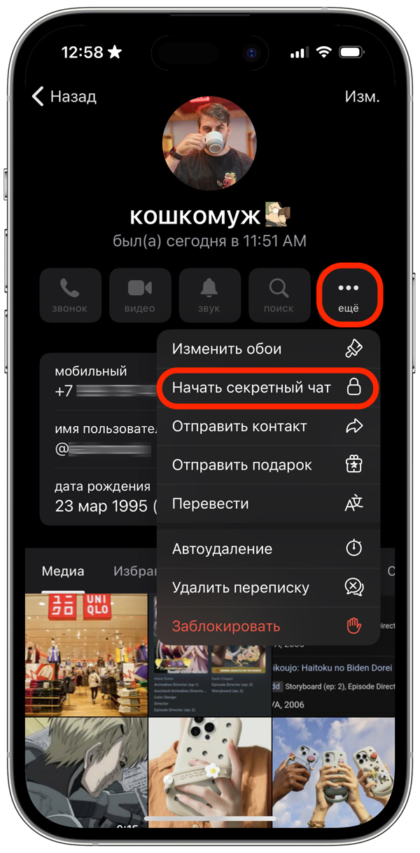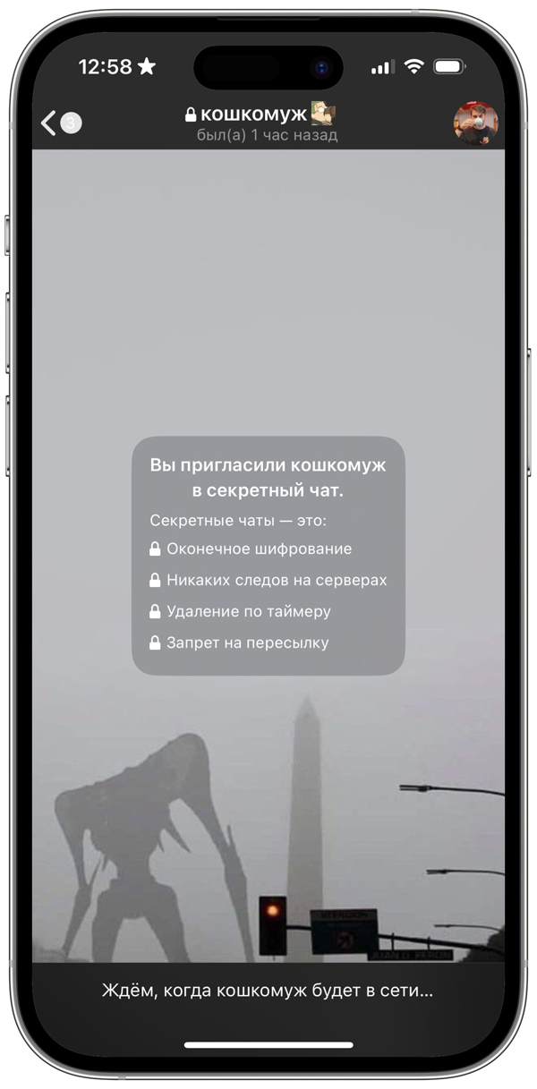 Есть и другой вариант — включить самоуничтожение всех сообщений и медиа в переписке с конкретным человеком через секретный чат. Создать его можно только на смартфоне, а не на ПК или в браузере. При этом сначала нужно дождаться, пока собеседник подтвердит приглашение.