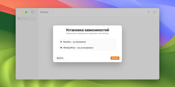 Whisky подходит для компьютеров Mac с процессорами Apple Silicon — M1, M2, M3 и их версиями. Также нужна macOS Sonoma 14.0 или новее, потому что программа опирается на Game Porting Toolkit от Apple.