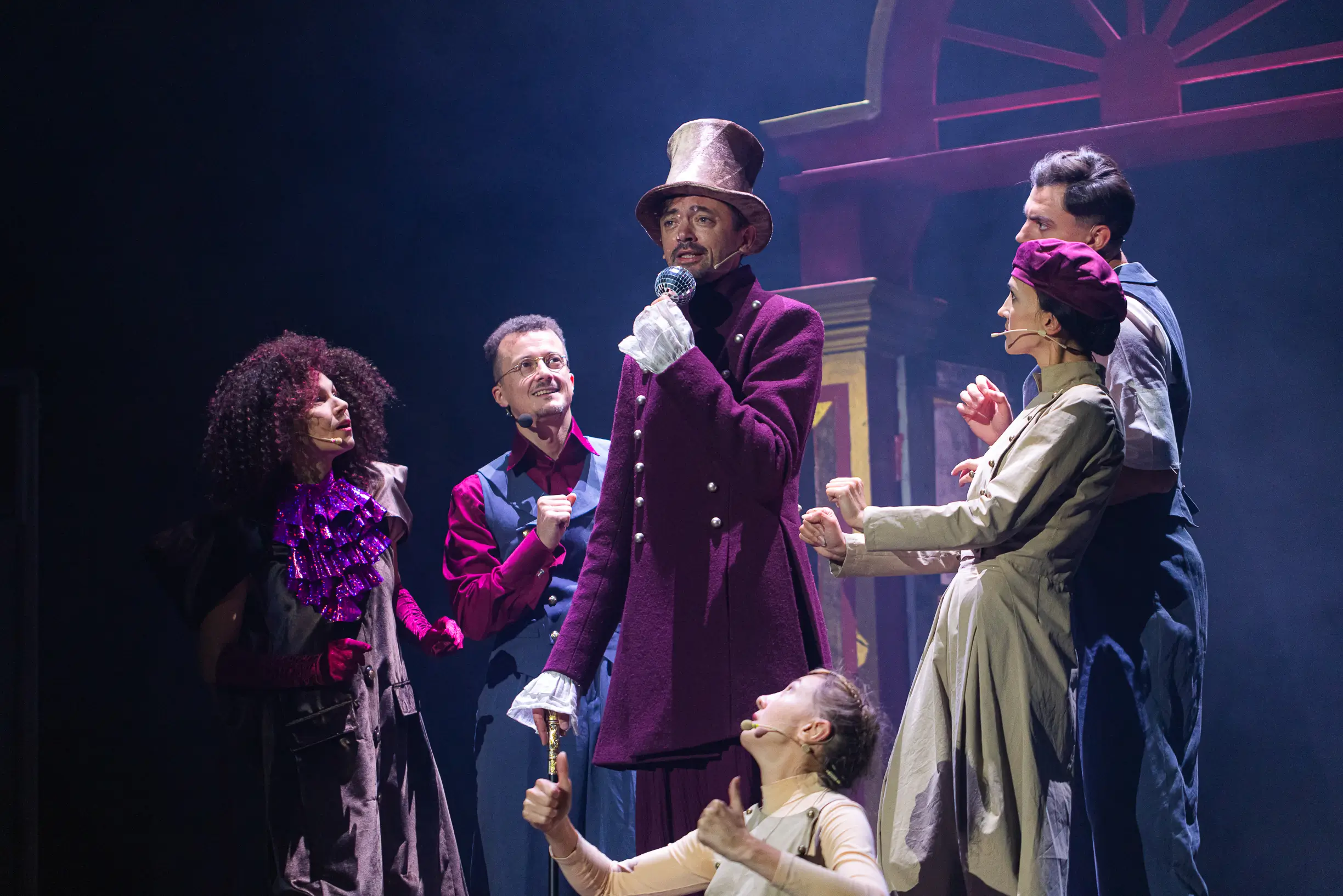 Наша постановка — о силе воображения, о честности и ответственности за свои желания, о том, как важно не предать себя, даже когда соблазн блестит так же заманчиво, как шоколадная река. Здесь есть место и смеху, и трогательным моментам, и музыкальной игре, оживляющей мир фабрики — с ее трубами, механизмами и причудливыми изобретениями. Маленьким зрителям будет интересно наблюдать за приключениями Чарли, взрослые же узнают в персонажах черты современности: спешку, потребительство, привычку мерить успех бранью. И, возможно, вместе с детьми напомнят себе, что доброта и воздержание — это тоже суперсилы.
