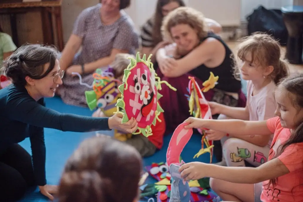 Это не «урок» и не «мораль». Это живая игра, где дети вместе с актерами и родителями создают двух персонажей — своего Монстрика (воплощение страха) и свое Счастье (место силы). Из безопасных материалов рождаются забавные, трогательные существа: у кого-то колючий монстрик, у кого-то — сонный и зеленый, а у кого-то — такой громкий, что нуждается в наушниках. Дети оживляют их, дают голос, движение, имя и даже правила. «чего мне сейчас нужно» и «как со мной обращаться, когда я злюсь/скучаю/пугаюсь». Так в игре появляется самое важное — язык эмоций.