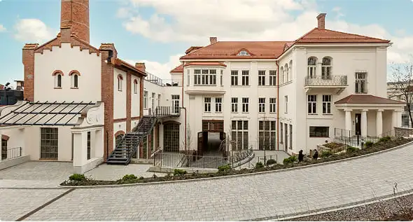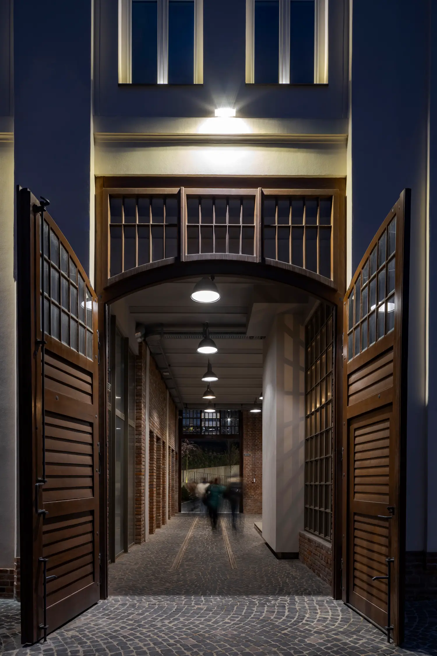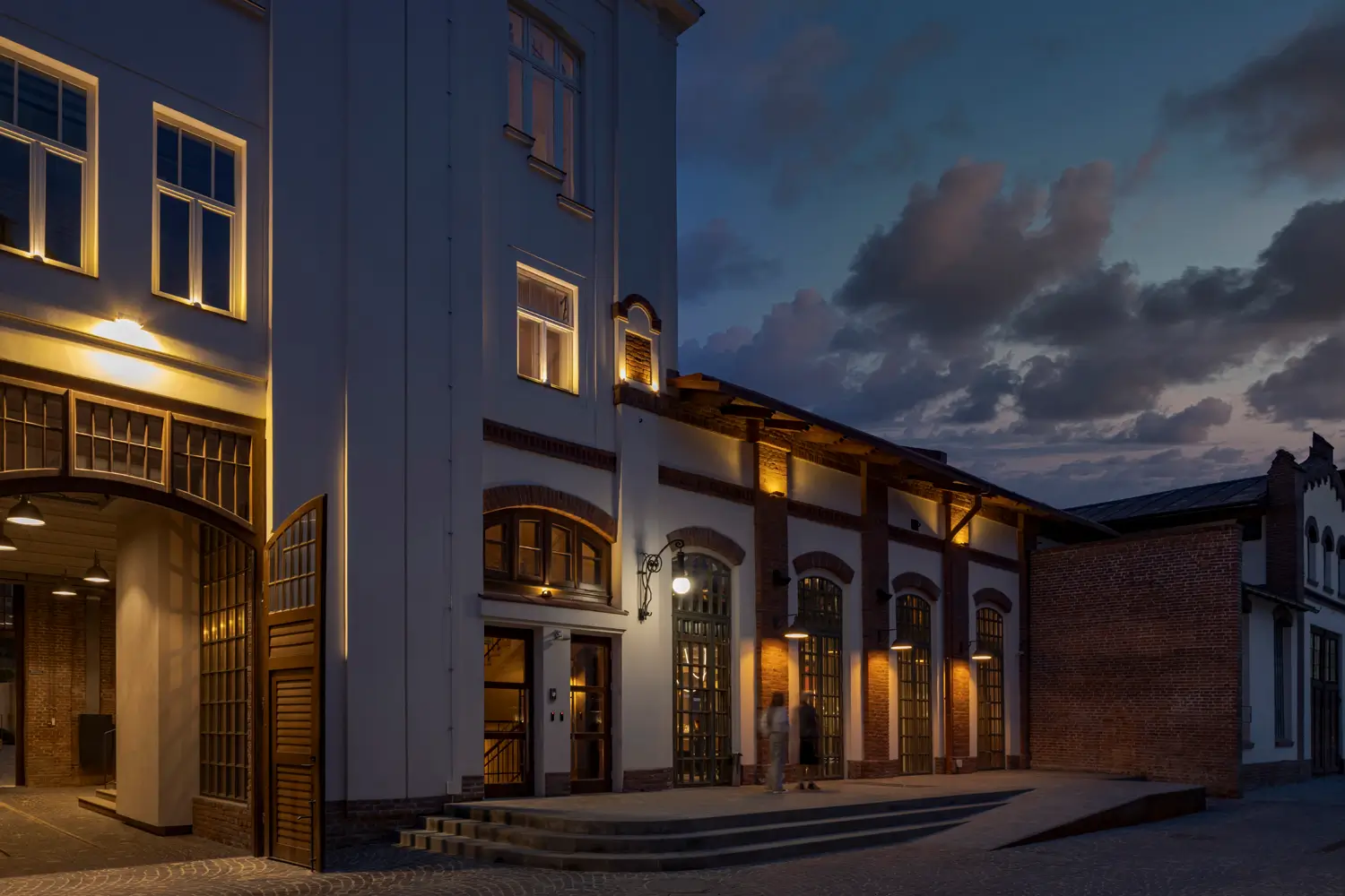 Пространство сформировано в зданиях с индустриальным прошлым, которые сохраняют атмосферу городской инфраструктуры и адаптированы под современные функции. Сочетание кирпича, металла и открытых площадей создает ощущение «живой» архитектуры: здесь легко сконцентрироваться и так же легко переключаться на общение с людьми.