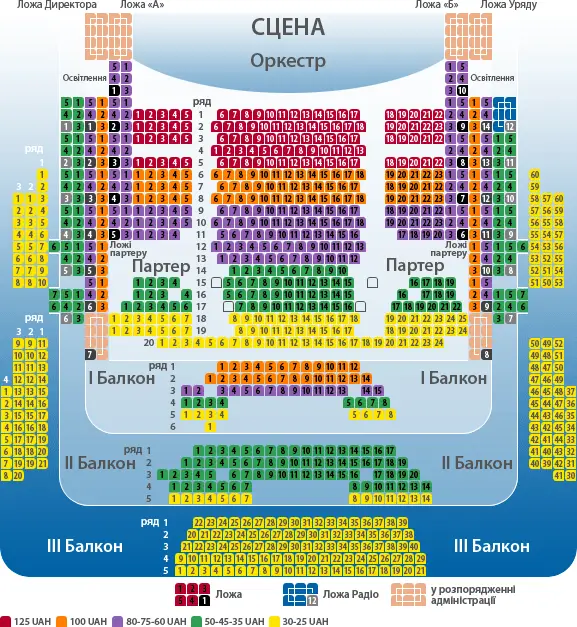 Схема зала Львовский национальный академический театр оперы и балета им. Соломии Крушельницкой