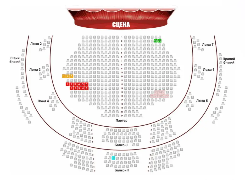 Схема зала Национальный драматический театр имени Марии Заньковецкой