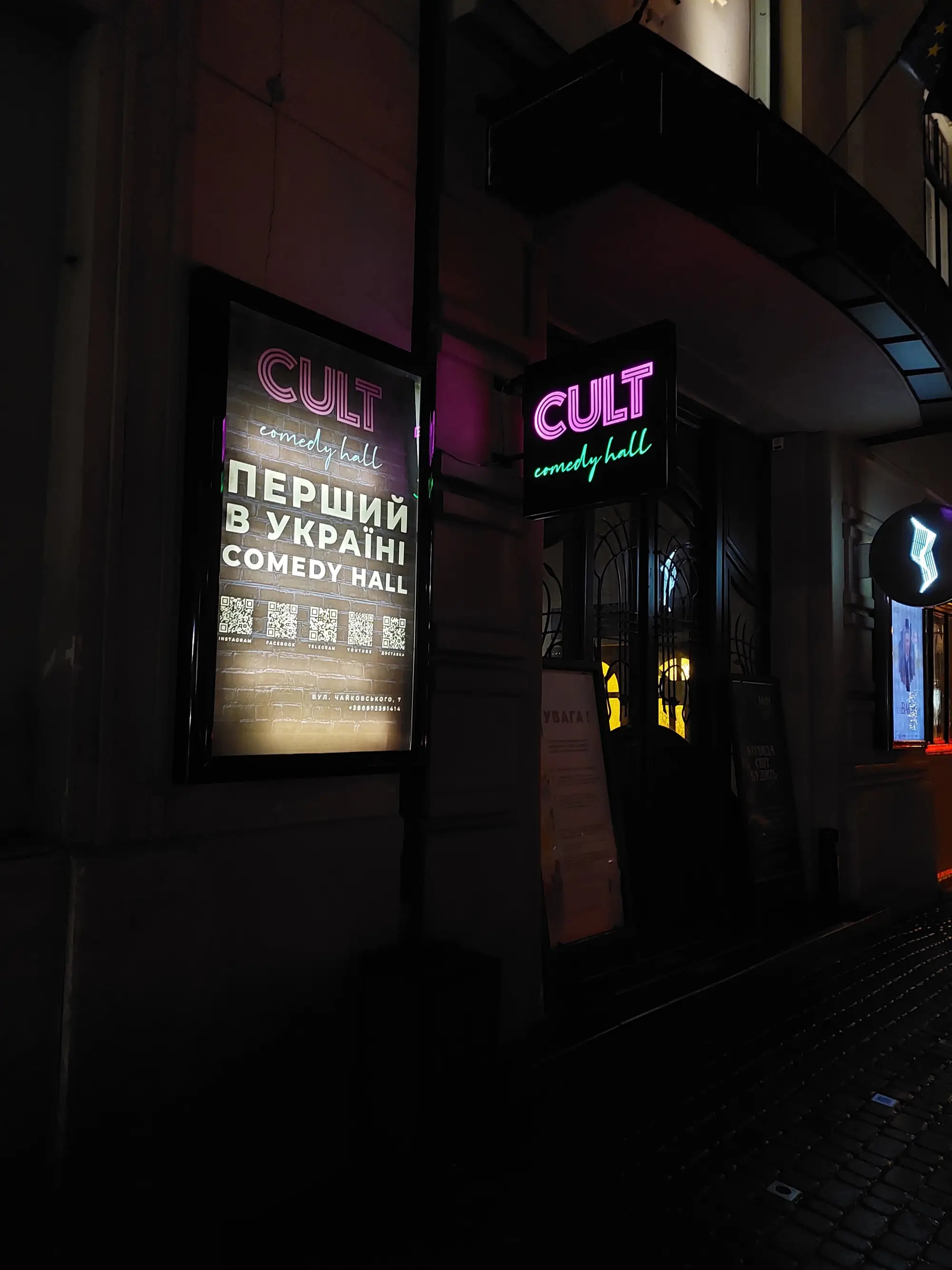 Cult Comedy Hall — это камерная площадка в центре Львова, где стендап оказывается на расстоянии вытянутой руки, а смех работает без лишних декораций. Здесь собираются любители современного украинского юмора, импровизации и авторских концертов. Формат простой и честный: сцена, микрофон, внимательная публика, бар с напитками — и никаких преград между комиком и зрителем. Если ищете, где провести вечер с друзьями, увидеть любимых артистов или открыть новые имена, эта локация станет удачным выбором.
