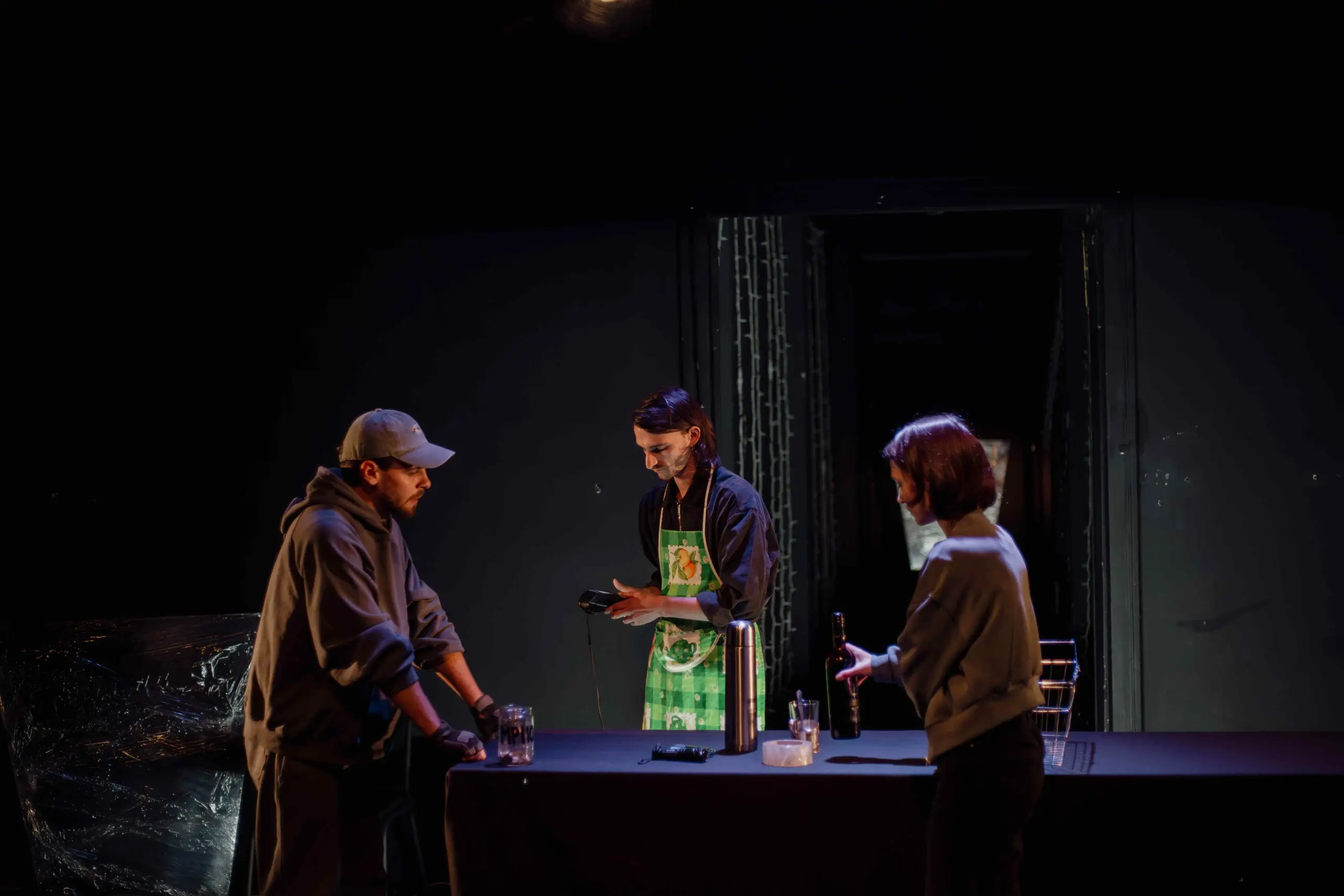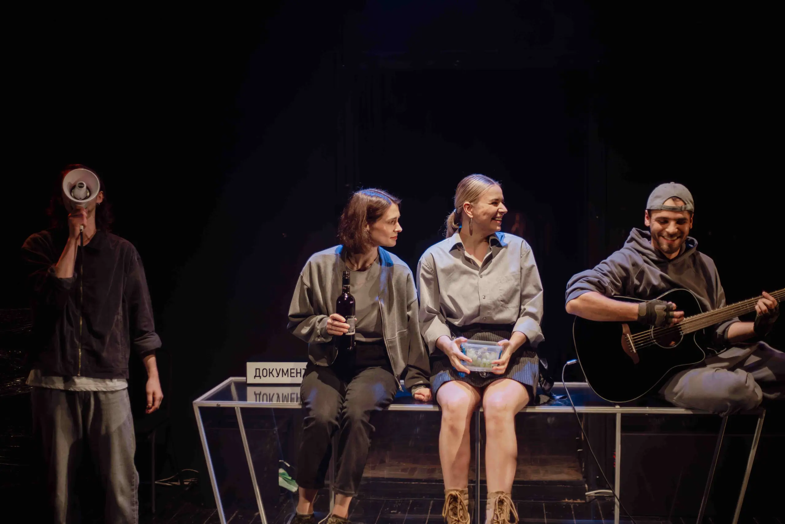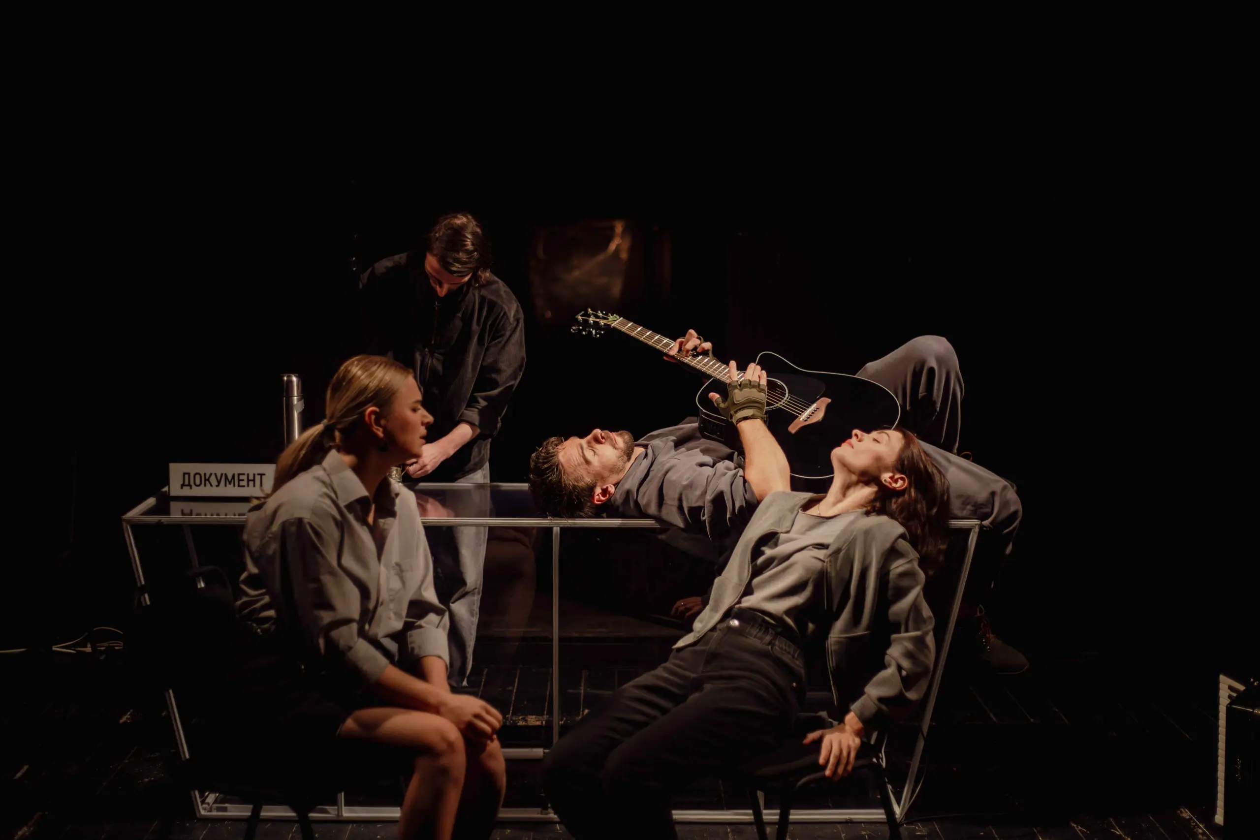 Да эта история — не только о войне. Она о пути и о музыке, держащей ритм, когда слова застревают в горле. На сцене — молодые и беззастенчиво красивые актеры и актрисы, составляющие «плейлист» путник с песнями и воспоминаниями, дорогами и короткими паузами на отдых. Каждая композиция — как новая станция: от шума площади до тишины больничного коридора, от грохота поездов до свиста ветра над морем. Здесь смех звучит рядом с дрожью рук, а легкая самоирония спасает от безнадежности не хуже брони. Путешествие оказывается картой страны и одновременно картой человеческого сердца, которое упорно отказывается скачать.