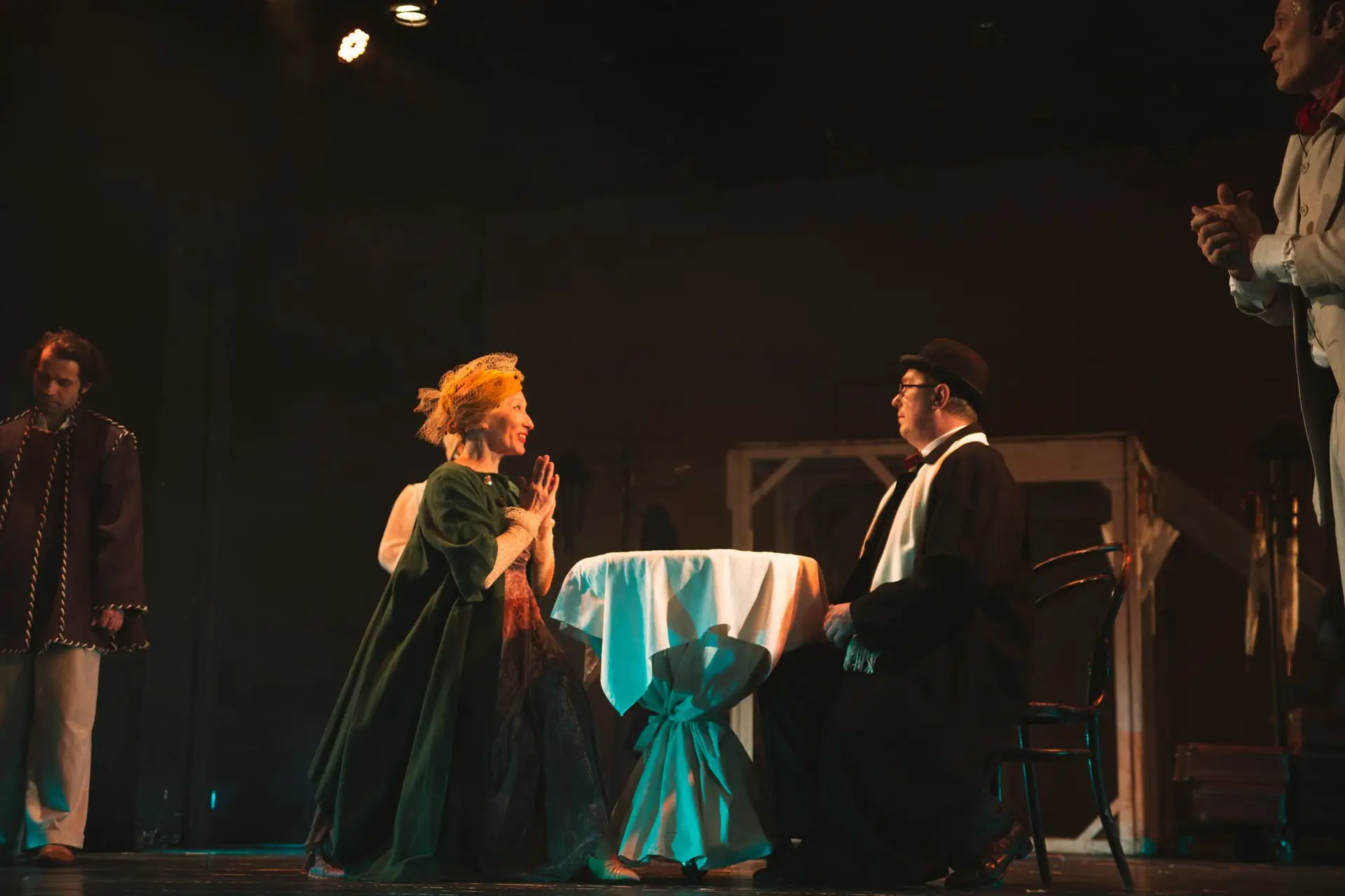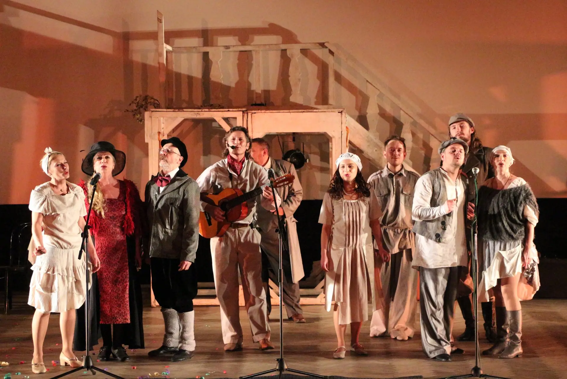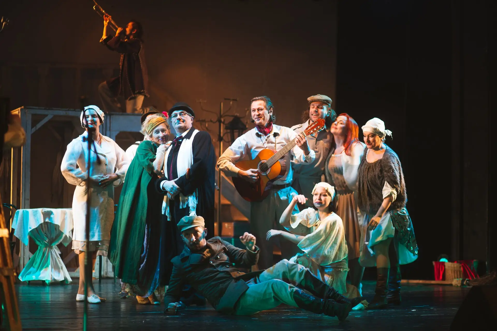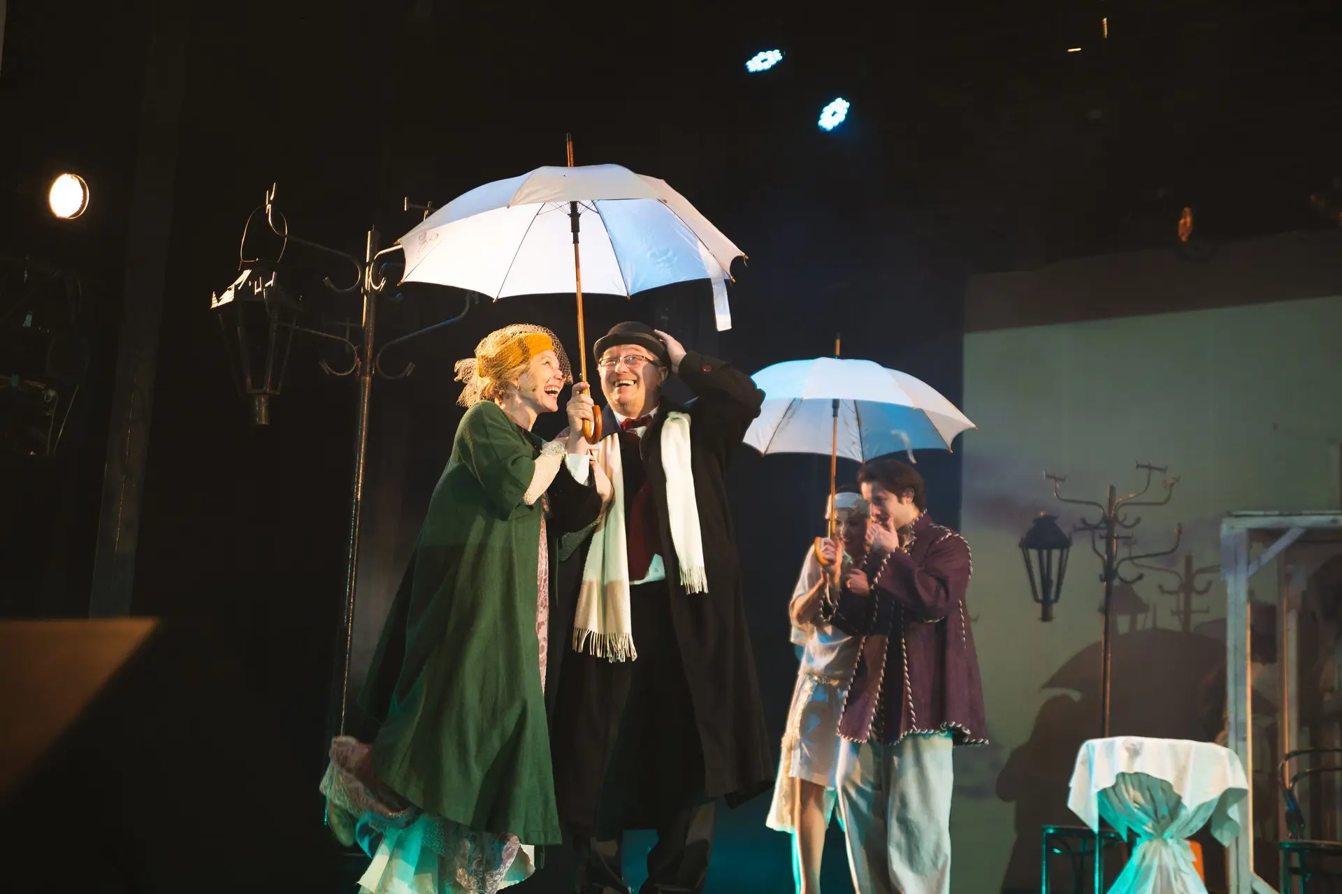 Музыка ведет сквозь жанры и эпохи: иронический куплет, теплая лирическая тема, наклоняющийся джазовый оттенок, танцевальные импровизации — все перетекает друг в друга, как улицы от Рынка до старых кварталов. Хореография работает вместе со сценографией: шаги складываются в орнамент, словно узор на мостовой, а тени фонарей превращаются в ночной оркестр. Остроумие здесь живет рядом с нежностью: смеешься, а через мгновение ловишь себя на том, что подпеваешь.
