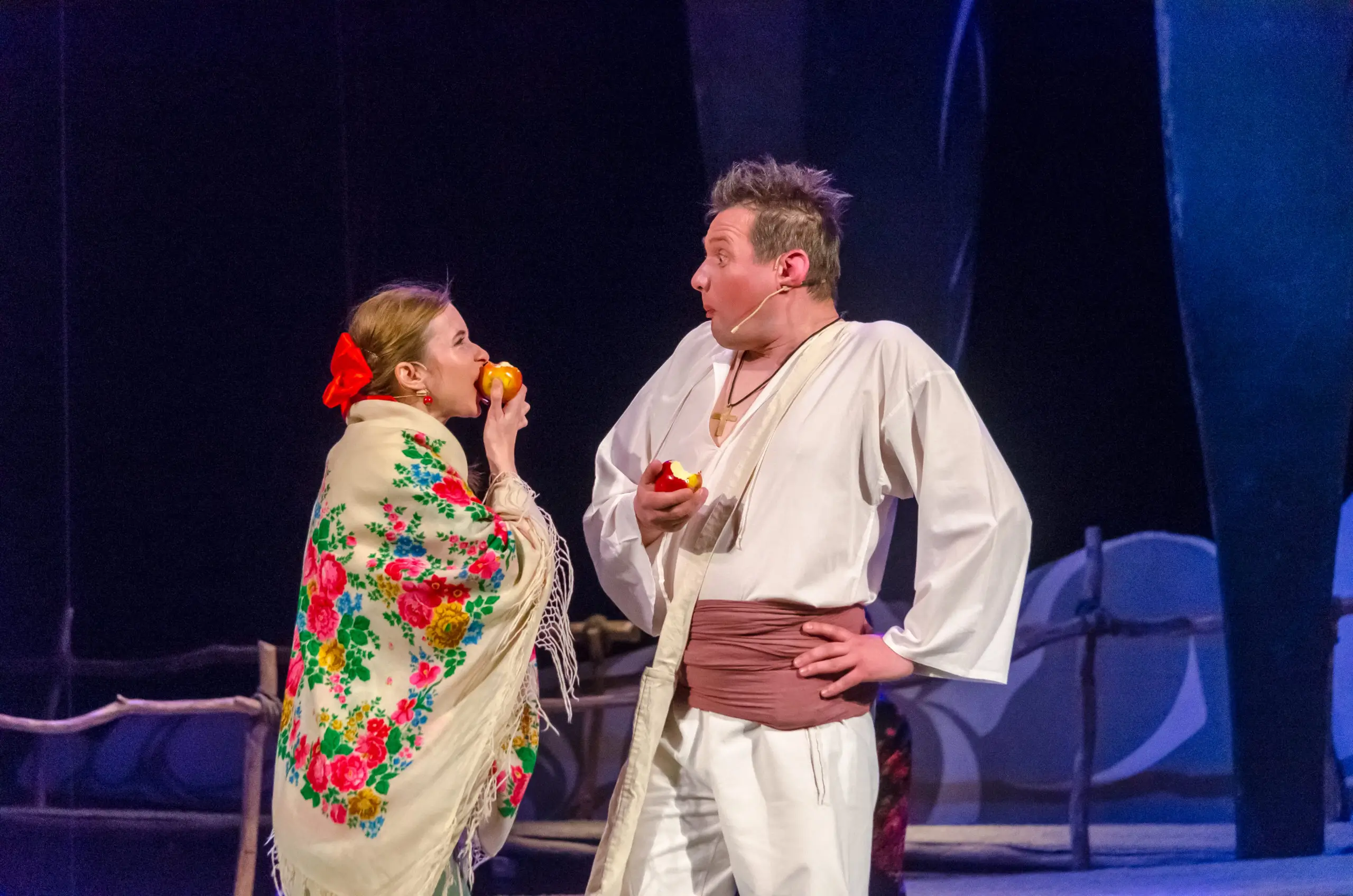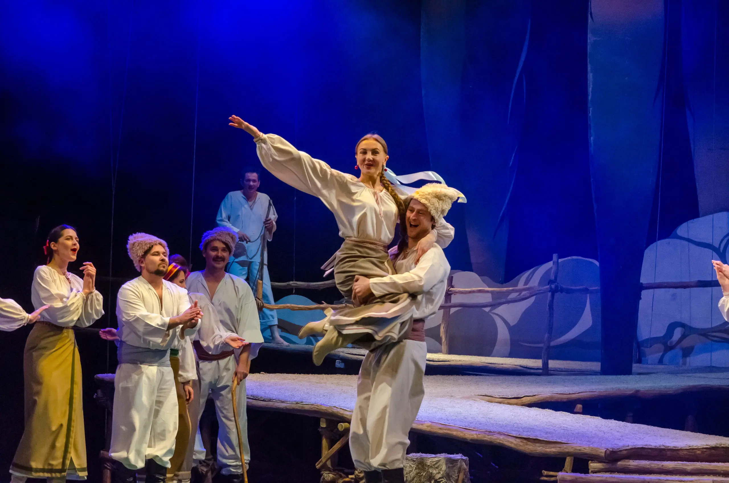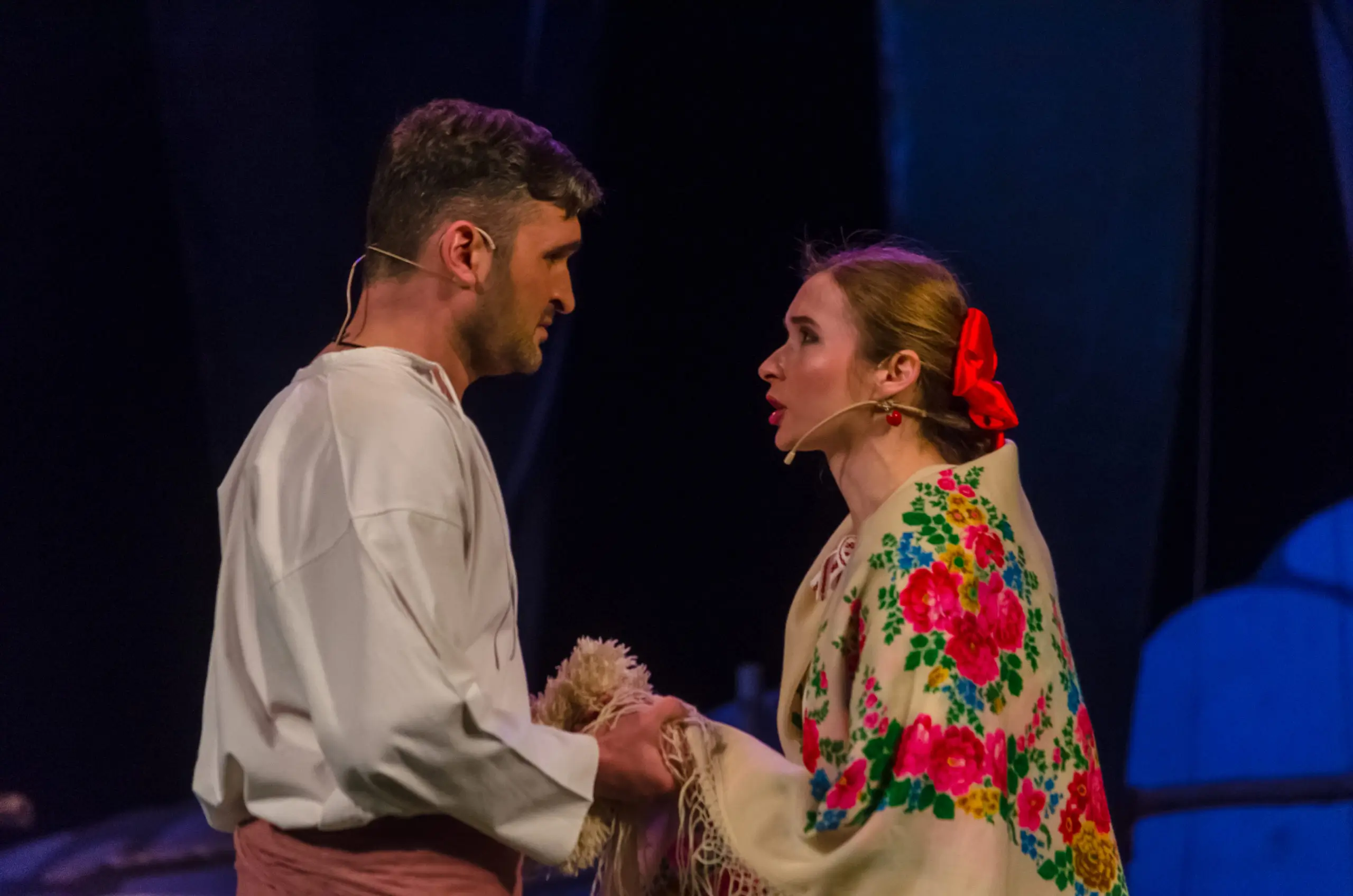 На сцене — красочный ярмарочный мир с шутками, прибаутками и остроумными песнями; зажигательные танцы, будоражащие кровь; живые диалоги, в которых каждое слово либо бальзам, либо перчик. Режиссерский язык и народная музыка сшивают быт и праздник в один красочный ковер: смеешься — и вдруг узнаешь у героев себя или соседа. То ли материнская «бдительность» относительно приданого, или родительское упрямство, или молодое уверенное «люблю» — все узнаваемое и сейчас.