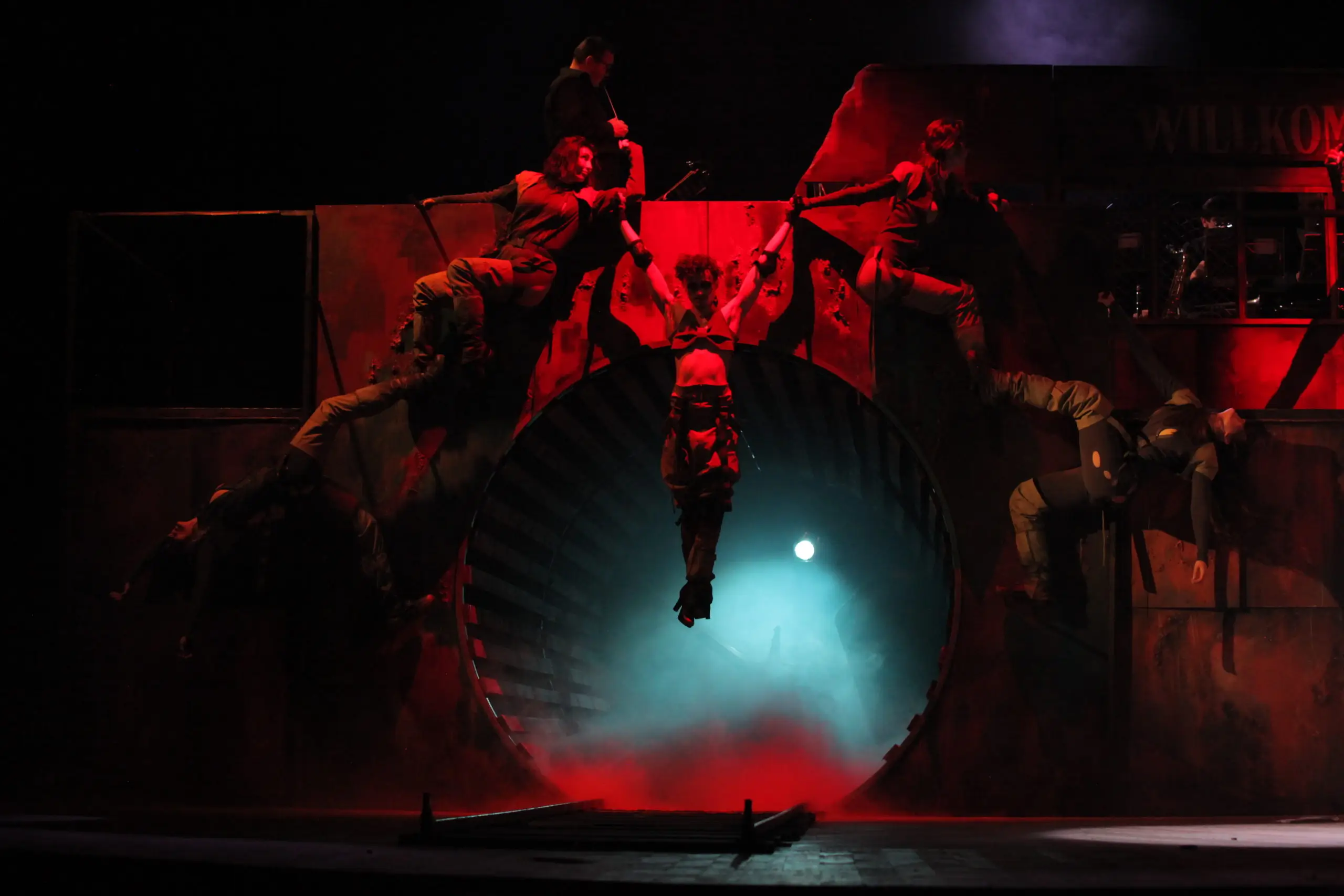Режиссер Максим Голенко выстраивает темпоритм как честный разговор с залом: номер — реплика — взрыв иронии — тишина. Здесь важны не только события, но и интонация: песни раскрывают характеры лучше монологов, а куплеты звучат как хроника циничной эпохи. Небольшой ансамбль с джазово-кабаретным привкусом, резкие световые акценты, прямые обращения к зрителю. все работает на то, чтобы показать: зло часто выглядит вполне пристойно, пока не вспыхнет прожектор.