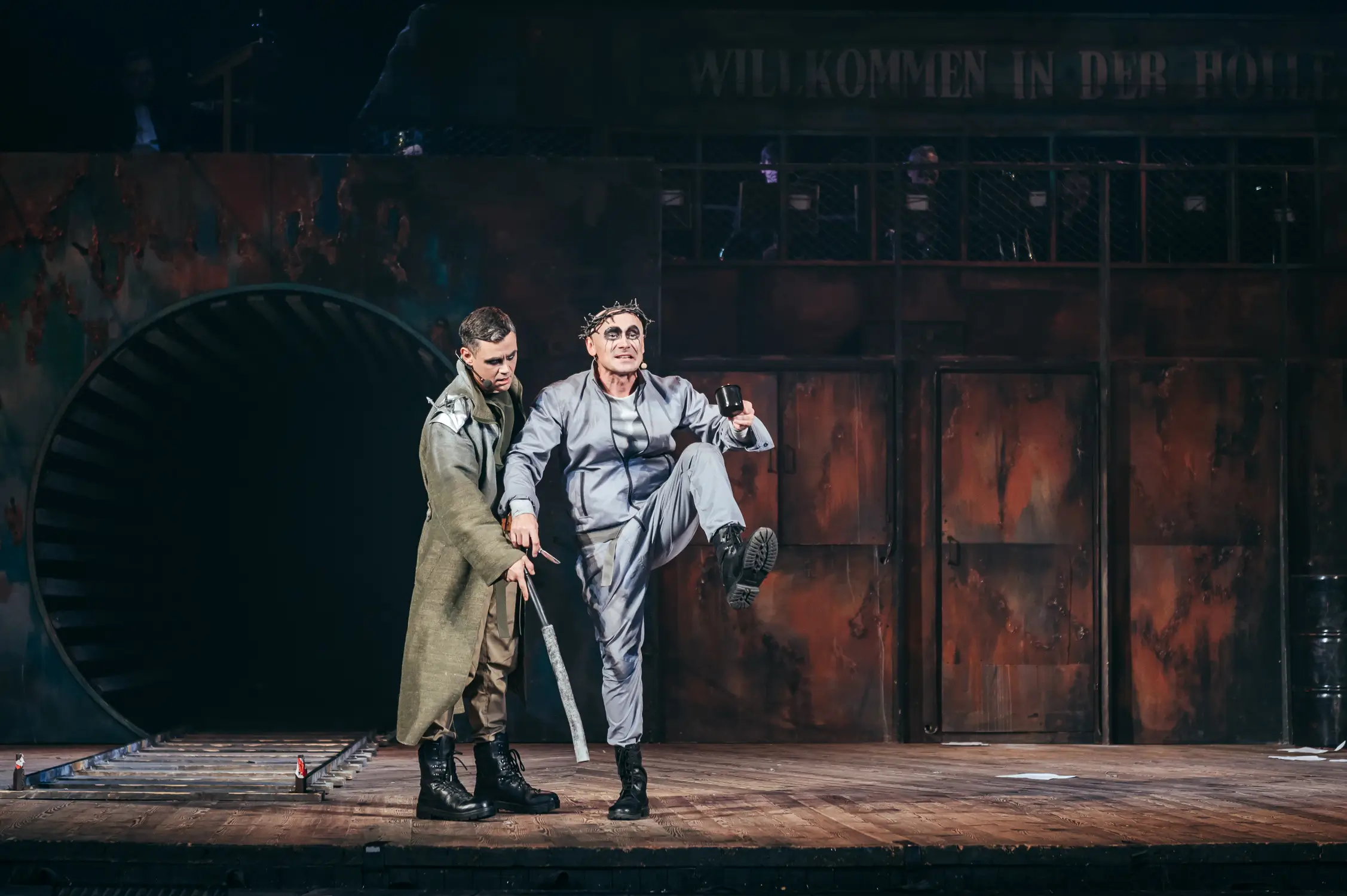 Наша постановка появилась летом 2021 года — когда страна только приходила в себя после COVID-локдаунов, но в воздухе уже было предчувствие великой войны. Премьера звучала как предупреждение: история о преступлении и коррупции, комфортно сосуществующих с «порядком», оказалась слишком современной. Сегодня, когда опыт фронта стал частью реальности многих, спектакль приобретает дополнительную силу: Брехтов контраст двух миров — людей, вернувшихся с войны, и наживающихся «в тылу» — читается без примечаний.