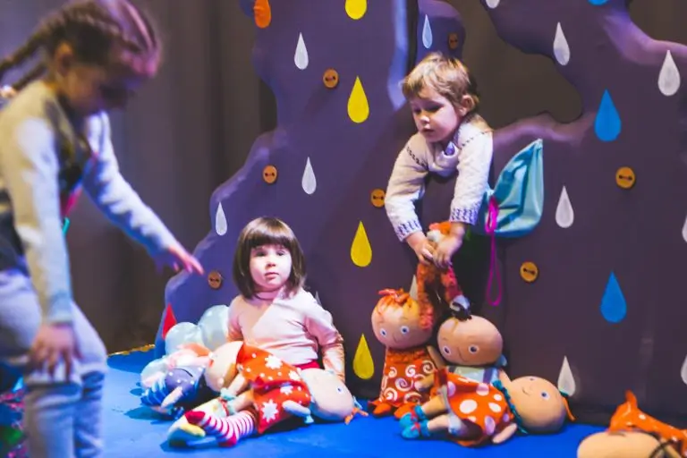 Пространство спектакля создано так, чтобы малыши чувствовали себя уверенно и интересно. Здесь можно сидеть на полу, обнимать мягкие подушки-облачки, осторожно касаться реквизита. Актеры деликатно подсказывают и поощряют, но не навязывают: дорога к игре всегда открыта. Маленькие шаги — повторить движение, перевернуть ленту, пересыпать бусинки — незаметно тренируют мелкую моторику, внимание и координацию. Через цвета и формы дети учатся различать оттенки, сравнивать величины, замечать ритм. И, что особенно важно, снимают внутреннее напряжение: касаются которого, слушают тихие звуки, наблюдают за светом.
