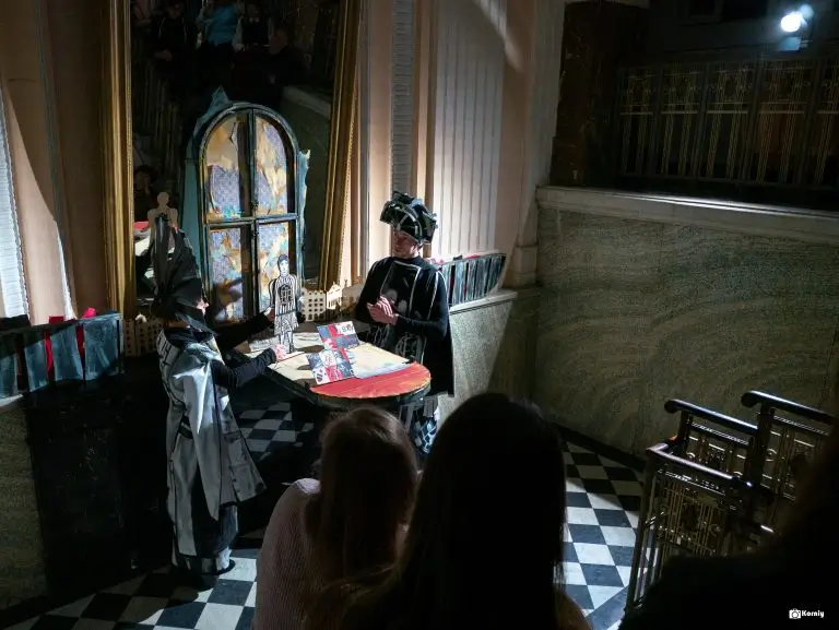 «Закоулками театра» — это не просто экскурсия, а живое приключение, в котором здание Львовского театра кукол (ей уже более ста десяти лет) становится главным рассказчиком. Вы заходите в фойе — и с первого же шага вам предлагают выбрать направление: пойти за звукорежиссером к пульту, за костюмером в хранилище тканей или за машинистом сцены — в темное подсценичество. Каждый выбор открывает другое «окно-портал» в прошлое: от первых постановок и довоенных афиш до легендарных премьер, собиравших аншлаги, и писем маленьких зрителей, до сих пор хранящихся в архиве.