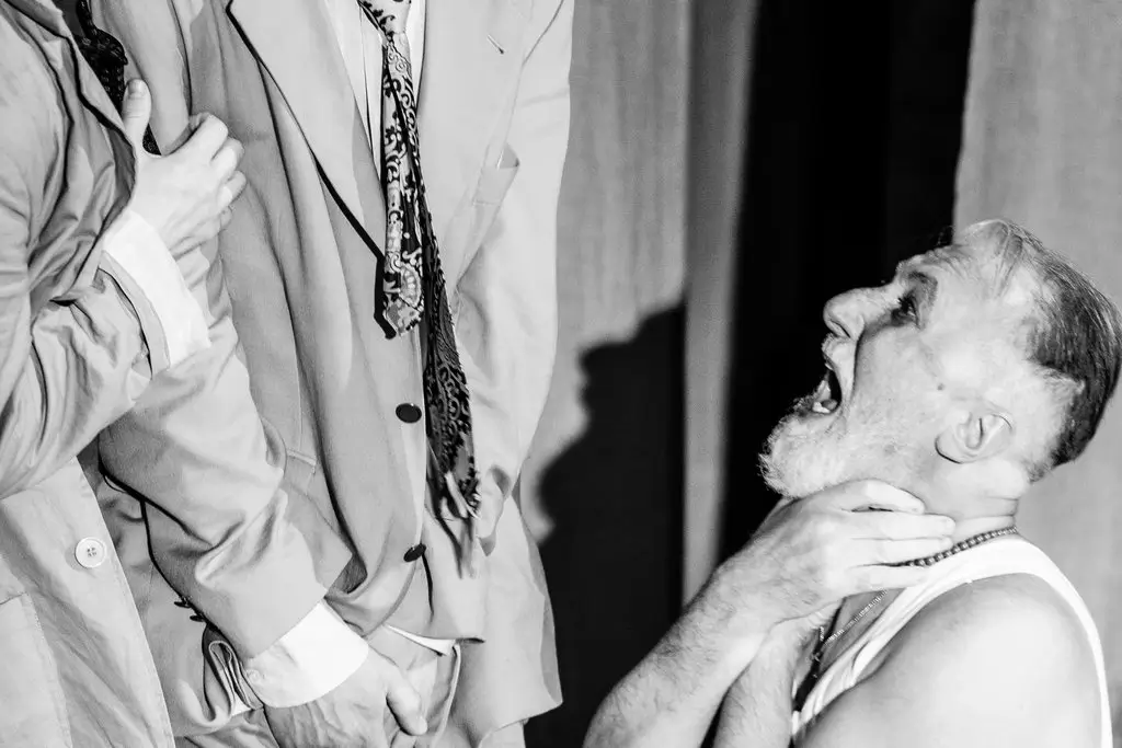 «Ожидая Годо» у Курбасовцев — спектакль об актерах и о театре как риске. Об игре, превращающей обычную мелочь в событие, а паузу — на взрыв. Здесь важны не декорации, а ритм молчания; не большое действие, а мелкий жест, на котором вдруг открывается бездна. Дерево, которое вчера было голым, сегодня имеет несколько листьев; дорога, ведущая в никуда, оказывается нашей ежедневной тропой.