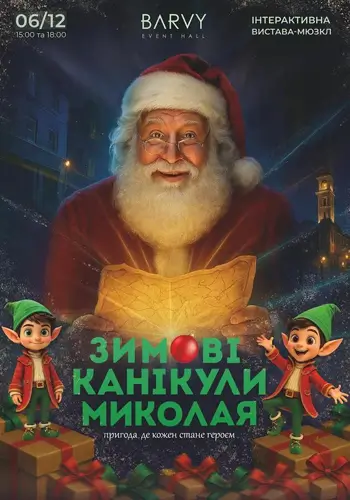 Праздник Николая во Львове можно отметить по-разному, но есть формат, который запомнится и детям, и взрослым. большое музыкальное шоу с мюзиклом, танцами и интерактивами. Именно таким будет «Зимние каникулы Николая» в Barvy event hall (HOMIN CENTER). 6 декабря город на один вечер превратится в настоящую зимнюю сказку, где сцена работает как портал в праздничную историю.