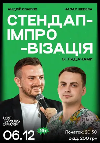 стендап СТЕНДАП ІМПРОВІЗАЦІЯ | ОЗАРКІВ ТА ШЕБЕЛА Львів 2025-12-06 20:30 Гастропаб «Довгі бурхливі оплески»