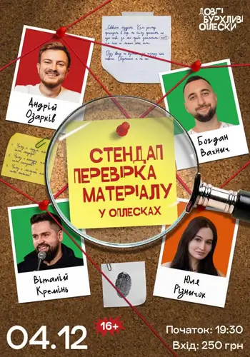стендап СТЕНДАП ПЕРЕВІРКА | ОЗАРКІВ, КРЕМІНЬ, РІЗНИЧОК, ВАХНИЧ Львів 2025-12-04 19:30 Гастропаб «Довгі бурхливі оплески»