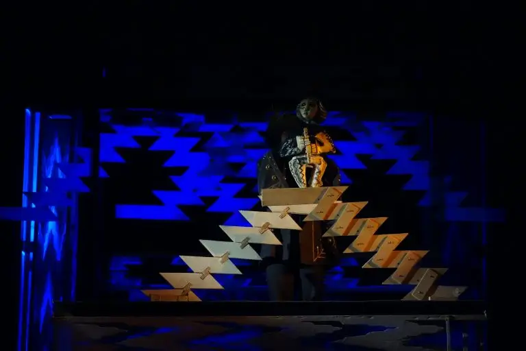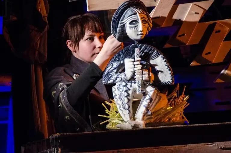 Постановка поєднує лялькове диво та живу гру акторів. Світло й тінь малюють на завісі карпатські обриси; з дерев’яних рейок народжуються мости й хатини; м’які тканини стають туманом, а тонкий звук сопілки перетворює сцену на гірський ранок. Ляльки з їхньою вивіреною пластикою підсилюють вразливість персонажів, а слова акторів звучать, мов давні говірки, наче з легенд і колискових. Уникнувши прямого моралізаторства, вистава говорить про складне просто — через образ, ритм, паузу і пісню.